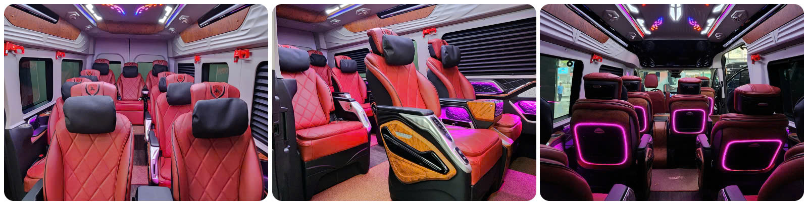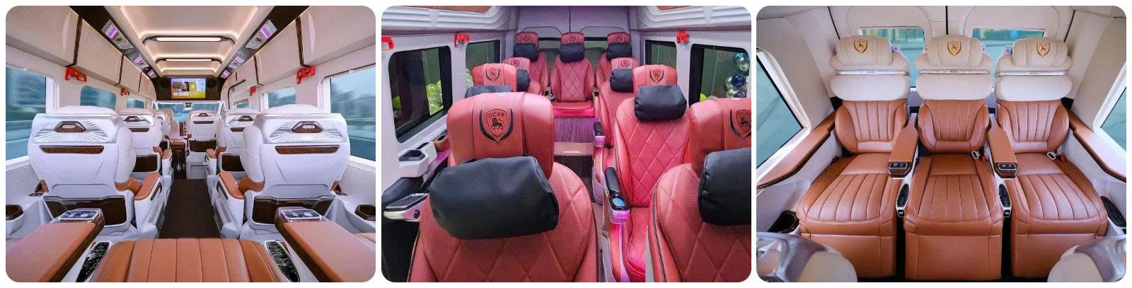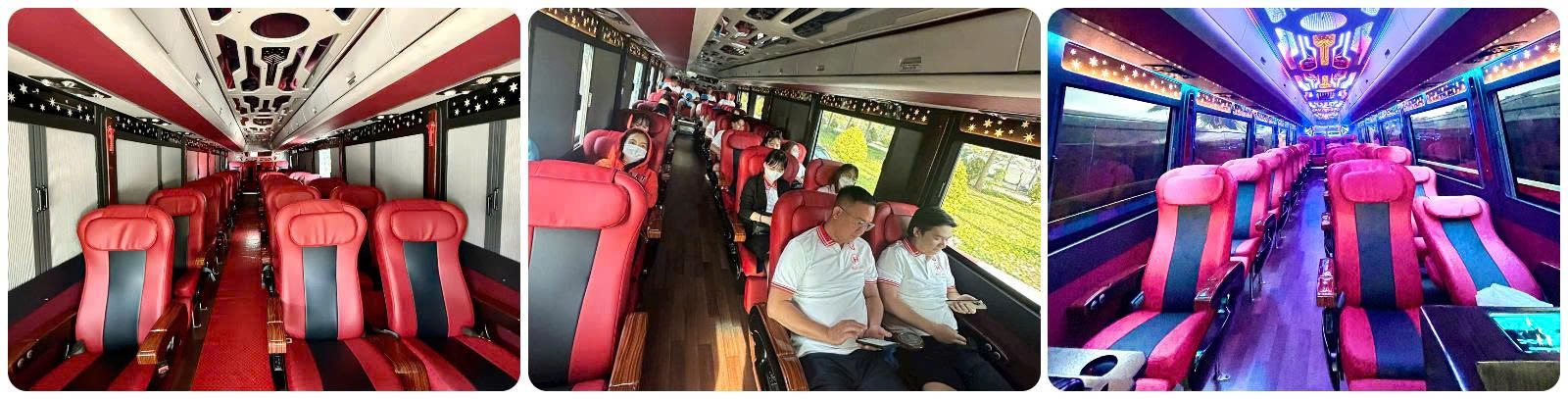 Nội thất: Ghế da hoặc bọc da cao cấp, tựa đầu cao, đệm êm, ngả sâu, khoảng cách giữa các ghế rộng rãi. Hệ thống điều hòa riêng, TV màn hình lớn, wifi miễn phí, ổ cắm USB sạc tiện lợi.