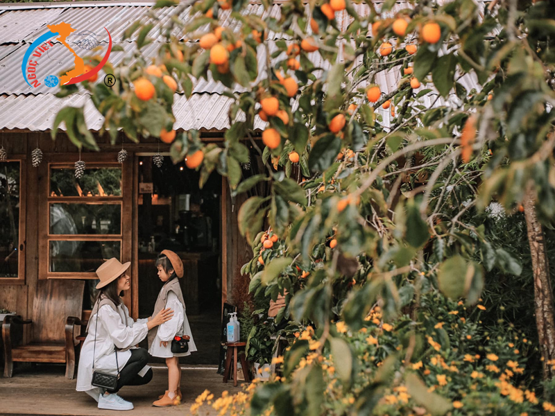 Những cây hồng tại quán thường sai trĩu quả chín vàng bắt mắt. Thêm nữa, chúng lại nằm ở vị trí thuận tiện cho du khách lên hình đẹp nhất. Tiệm mở cửa từ 7h đến 21h30 hàng ngày. Giá đồ uống 15.000 đến 60.000 đồng/món. Ngoài ra, bạn có thể thuê phòng qua đêm với giá 200.000 đến 400.000 đồng.