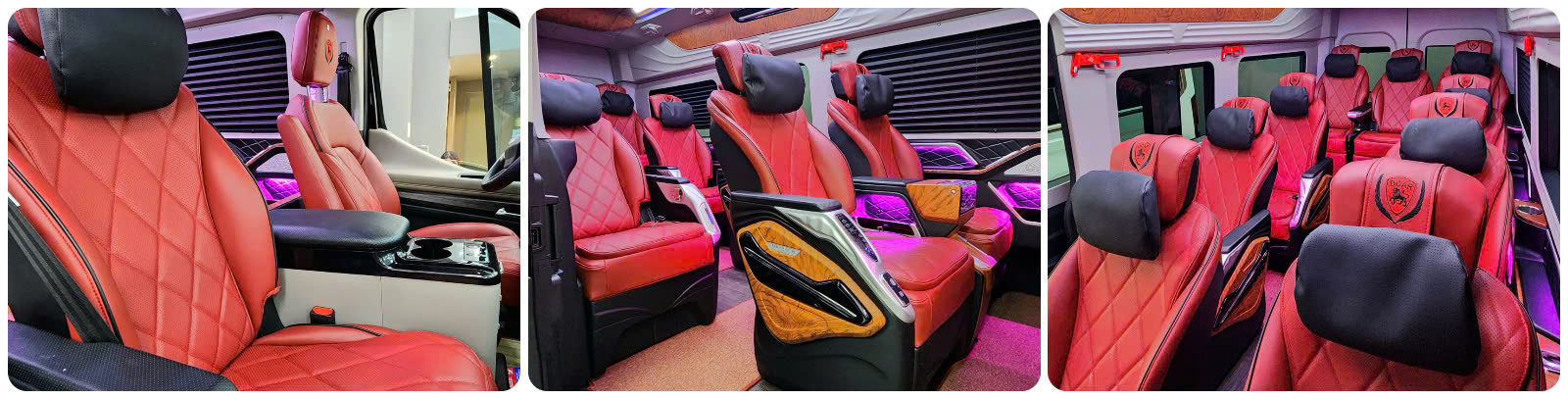 Nội thất: Ghế da hoặc bọc da cao cấp, tựa đầu cao, đệm êm, ngả sâu, khoảng cách giữa các ghế rộng rãi. Hệ thống điều hòa riêng, TV màn hình lớn, wifi miễn phí, ổ cắm USB sạc tiện lợi.