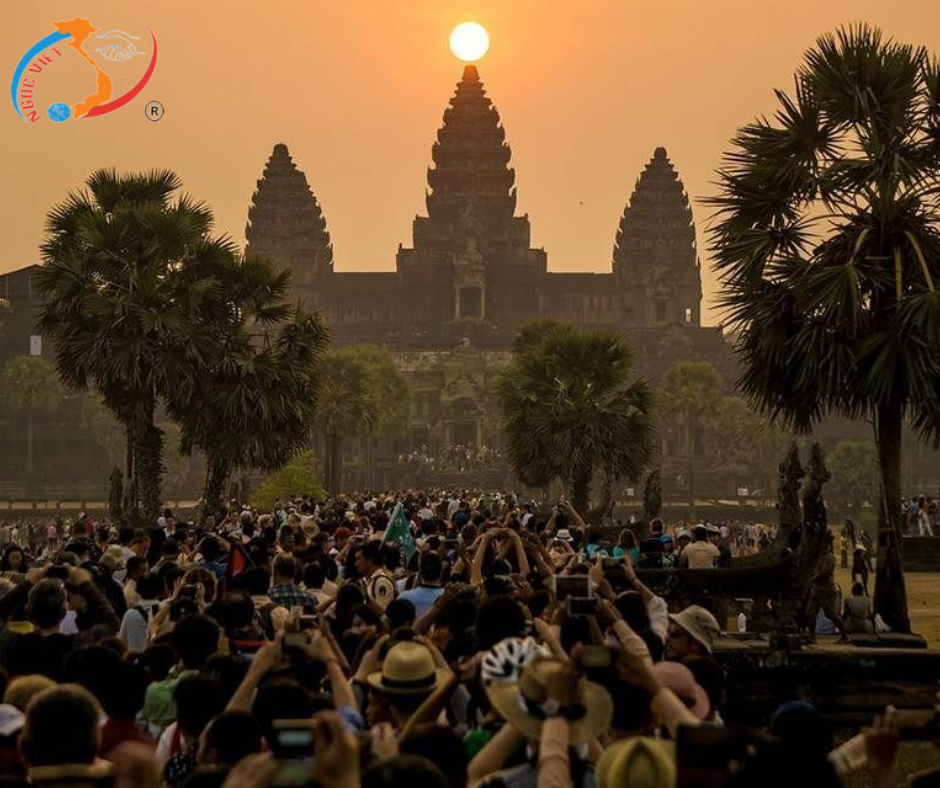 Mỗi năm, vào dịp xuân phân, cảnh tượng mặt trời đỏ rực từ từ nhô lên phía sau ngọn tháp trung tâm của Angkor Wat luôn làm say lòng du khách. Hàng nghìn người đổ về đây để tận mắt chứng kiến khoảnh khắc hiếm có này. Những tiếng hò reo, trầm trồ trước vẻ đẹp thiên nhiên hòa quyện cùng sự kỳ công của con người vang vọng khắp không gian, khiến trải nghiệm này càng trở nên khó quên.