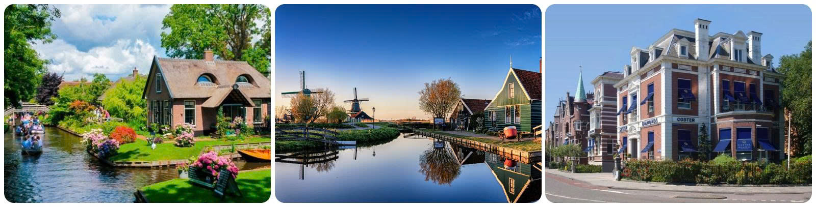 • Vùng quê vừa yên bình lại thoáng đãng Giethoorn - ngôi làng không lối đi nằm ở phía bắc Hà Lan. Giethoorn được biết đến như là Venice của Hà Lan và là điểm đến hấp dẫn trong hành trình du lịch châu Âu. Cả ngôi làng nhỏ được bao bọc bởi nước và người ta chỉ có thể di chuyển bằng thuyền, xe đạp hoặc đi bộ.
