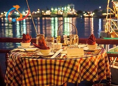 Nếu như những bữa ăn tối trong nhà hàng đã trở nên nhàm chán, du khách hãy thử du ngoạn ăn tối trên chiếc du thuyền chuẩn mực 5 sao SaiGon Princess sang trọng theo cách điệu hoàng gia châu Âu để vừa thưởng thức ẩm thực tuyệt vời, vừa chiêm ngưỡng khung cảnh Sài Gòn về đêm trong chuyến du lịch Sài Gòn dưới một góc nhìn khác thì hãy lựa chọn tour ăn tối trên sông Sài Gòn.